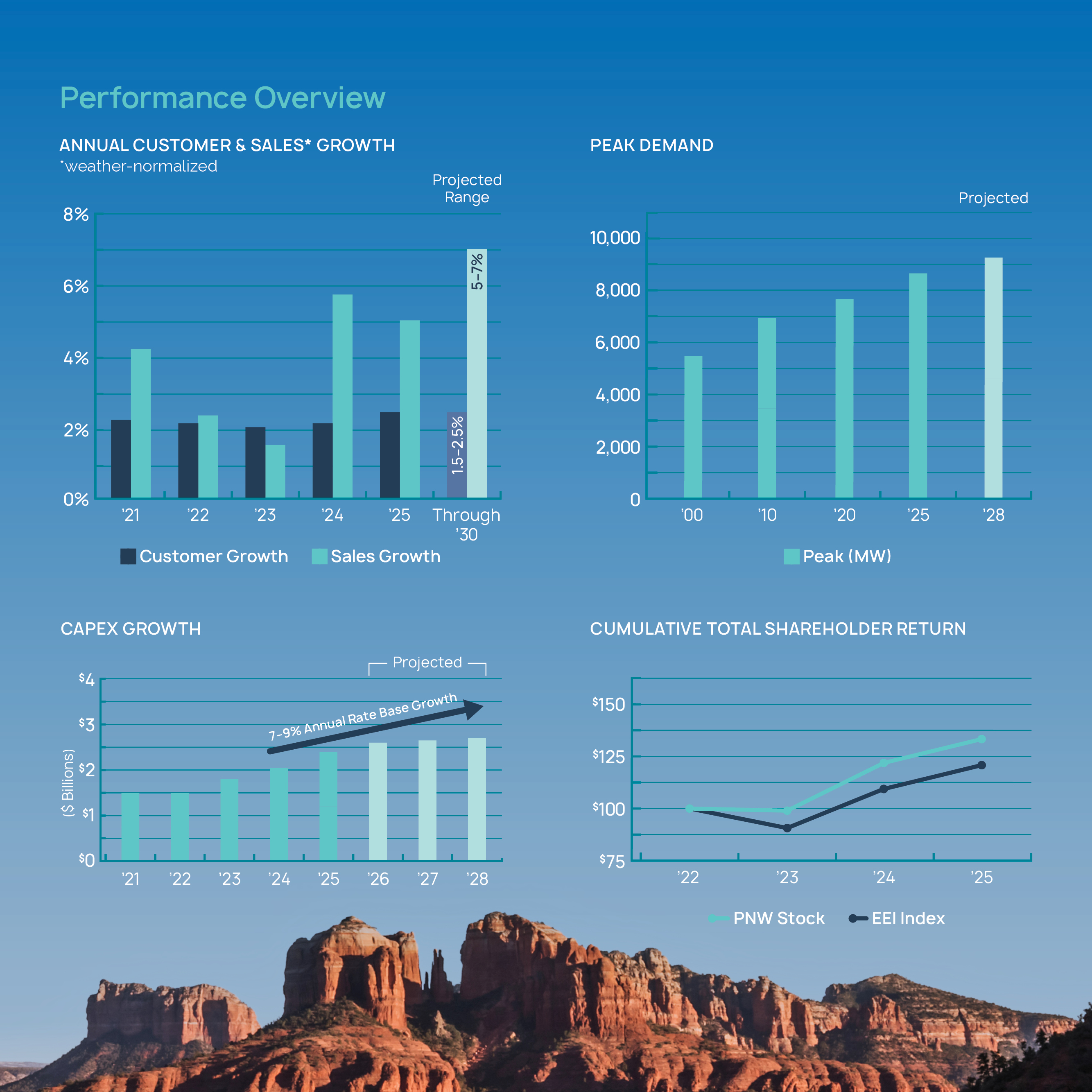 Arizona is experiencing one of the most transformative periods in its history. Population growth, new industries, and the rapid expansion of advanced manufacturing and data centers are reshaping the state’s economic landscape. In 2025, Pinnacle West — through our operating company, Arizona Public Service (APS) — stood squarely at the center of this change.